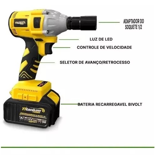 Chave De Impacto A Bateria 1/2 6153 21v Bivolt Titanium
