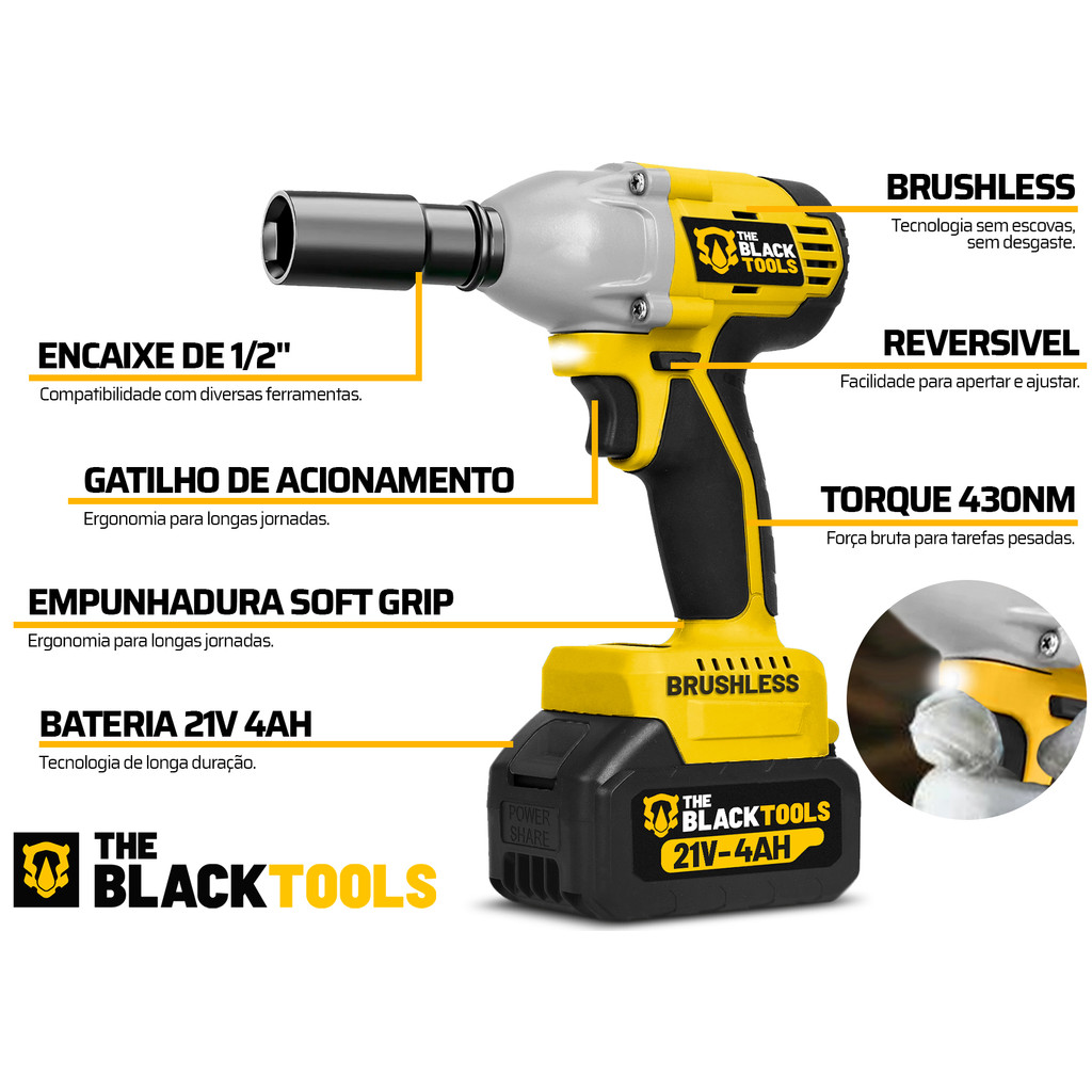 Chave De Impacto A Bateria 21v Bivolt Tb-21i The Black Tools