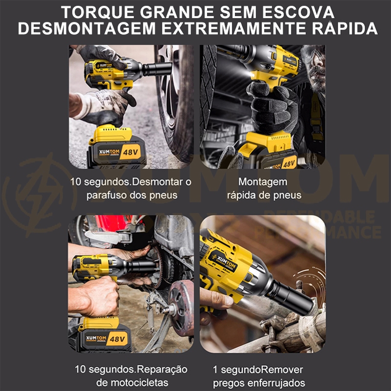 Bem-vindo à loja XUMTOM 🎉🎉🎉 ⚡ Envio rápido a partir de São Paulo - entregue seu pacote rapidamente! ⚡ Uso multifuncional: chave de impacto, furadeira, chave de fenda, adequada para desmontagem e instalação de pneus de veículos médios, uso doméstico de DIY e por trabalhadores de oficinas. ⚡ Público-alvo: Seja para projetos de DIY em casa, manutenção de carros e motocicletas, reformas ou trabalhos em oficina, a chave de impacto é uma ferramenta "essencial". Comprar uma chave de impacto que possa ser usada por longos períodos é, sem dúvida, a ferramenta elétrica mais valiosa para adquirir. ⚡ Produtos de qualidade com preços acessíveis Apresenta-se A uma marca comprometida com A qualidade e necessidades do cliente Uma marca comprometida com A qualidade e necessidades do cliente. O nosso objetivo é oferecer as melhores soluções ao seu dia a dia, com design funcional e inovador. Para facilitar o transporte de produtos pelos clientes para o trabalho, Projetamos especialmente uma bolsa de mão da marca XUMTOM Chave de Broca Profissional Com Bateria de Lítio 48V É A Escolha Perfeita Para Profissionais Que Precisam de Desempenho Superior E Mobilidade Superior.Desenvolvida Especificamente Para Conhecer As Maiores Expectações, A Ferramenta Proporciona Uma Combinação Ideal de Funcionalidade, Durabilidade E Conveniência. Acompanhamento: 4 × Soquetes: (17, 19, 21 e 22mm; ) 1 × saco de marca da marca XUMTOM 1 × Manual de Instruções; 1 × Chave de impacto 1 × carregador Bivolt; 2 × 48V Bateria Chave de impacto de força de torque de 1/2" e 320nm de tecla de impacto de força de torque, uma das mais fortes e poderosas da categoria, com variações de velocidade e rotações reversíveis; Ferramenta para trabalhos que exige força, velocidade e segurança, no aperto e desprendimento dos parafusos e porcas mais fortes que exigem força, velocidade e segurança, no aperto e desprendimento dos parafusos e porcas mais fortes. Vantagens: Controle reversível em LED de alta visibilidade e emborrachado, anti-desclinante, equipado com luz LED de alta visibilidade e emborrachado, anti-desclinante, controle reversível; De forma profissional; Use para retirar e colocar rodas de veículo médio de forma profissional; Modelo de uso profissional, forte, robusto e ergonômico; Motor sem escovas. Características do Produto: - O modelo sem pincéis tem maior confiabilidade, maior eficiência (potência maior para reduzir o atrito), ruído reduzido, maior vida útil, eliminação de interferência eletromagnética e eliminação de ionização do computador necessária para conectar um motor de pincel. Folha de Dados de Dados: -Velocidade De rotação: 0-1900 / 0-2400 (RPM); Indicador de carga da bateria; Taxa de impacto: 3.000 max.; Bateria: 4.000 mAh; Velocidade variável; Motor sem escova; Torque: 450 nm; Tensão: 48V. Peso: 2,5 kg Garantia do Vendedor: 3 meses