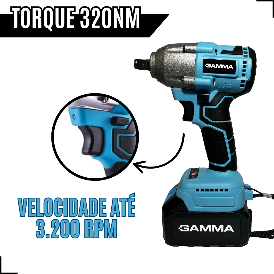 Chave De Impacto Gamma 21V Brushless 320nm Bateria Carregador Maleta Bivolt