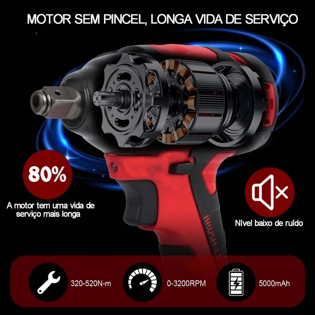 | Chave De Impacto Sem Fio, 420 Nm, Kit Parafusadeira, Furadeira, Mot... este produto | R$ 179,00 | 50% | 4.7/5 | — |
