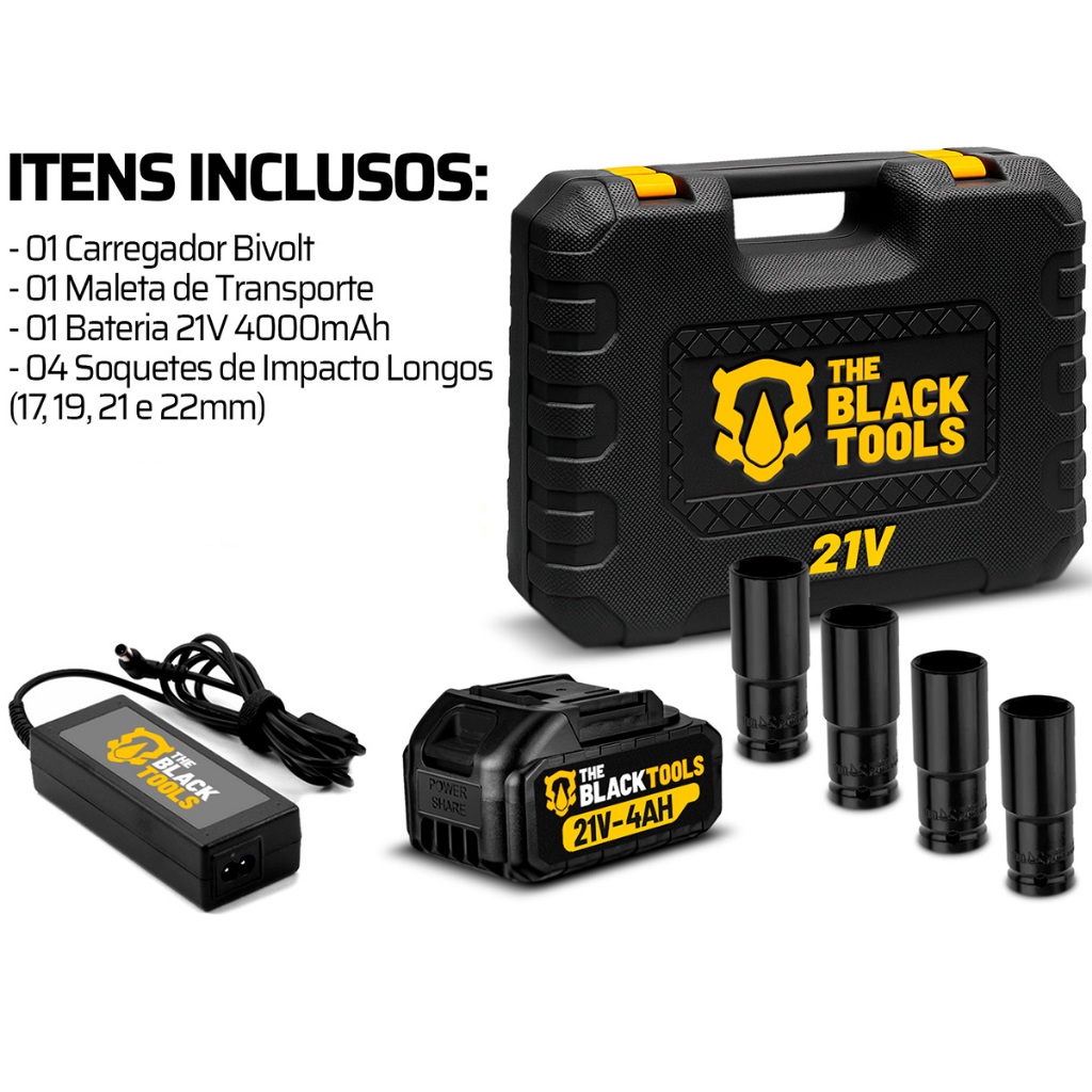 Chave De Impacto Sem Fio Elétrica Com Maleta A Bateria 21v Bivolt Amarelo The Black Tools