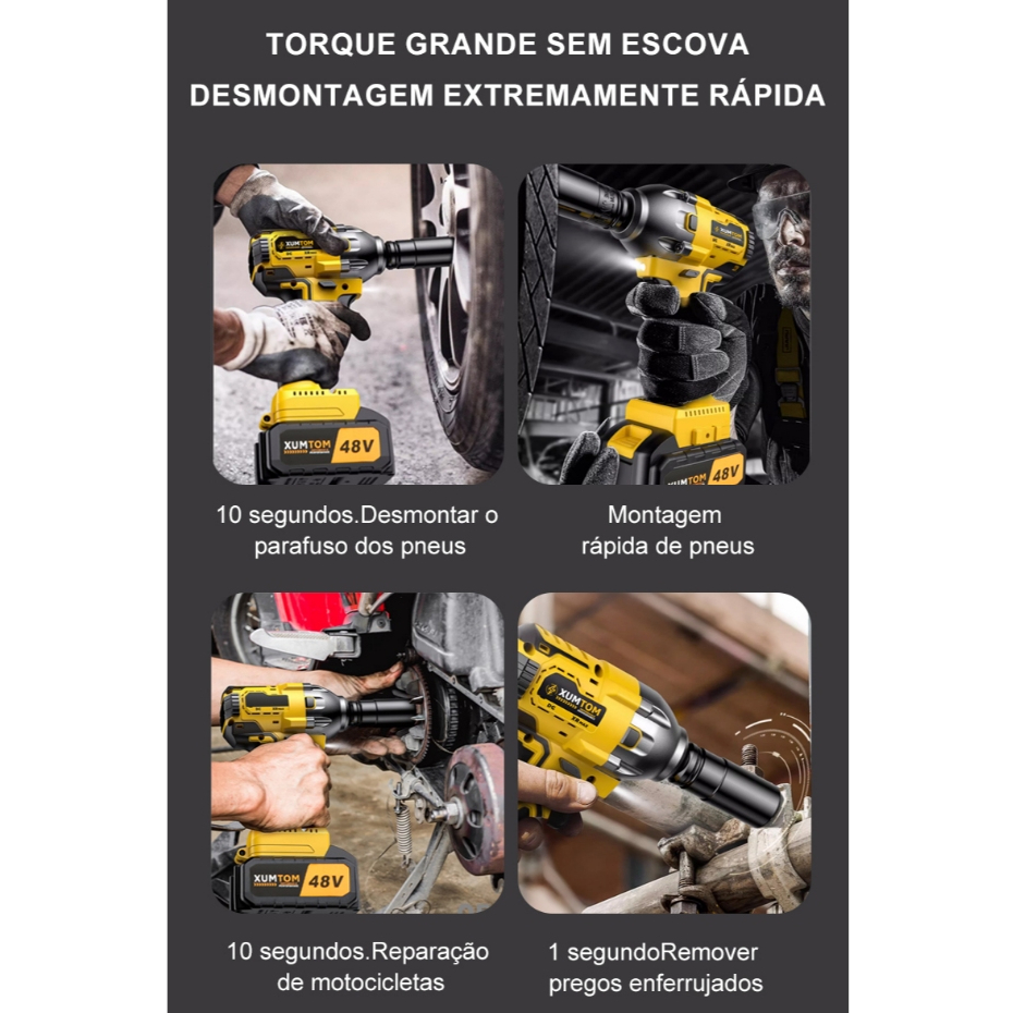 Chave De lmpacto 48V Elétrica Profissional 450NM Motor Sem Escovas Com 48V-02 Baterias Bivolt