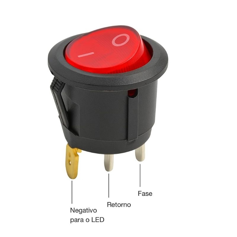 Chave Gangorra 20mm ON/OFF com LED Vermelho Interruptor Redondo KCD1-101