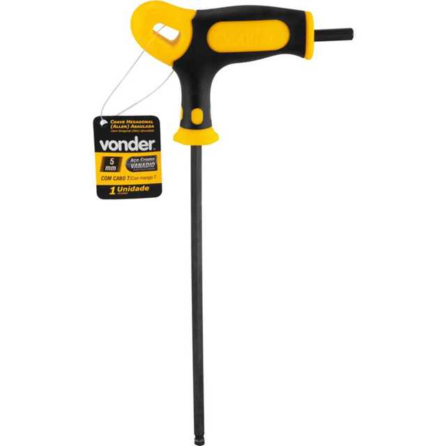 Chave hexagonal allen abaulada longa de 5,0 mm com cabo T - Vonder