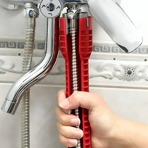 CHAVE MULTIFUNCIONAL HIDRÁULICA Instalador Hidráulico para executar serviços de encanamento. Ideal para manutenção e instalação de pias, torneiras, registros, chuveiros, aquecedores, etc. Prática, versátil e de simples utilização, ideal para montagem, instalações, reparos, manutenções. Tecnologia multifuncional que substitui inúmeras ferramentas, antiderrapante e ergonômica. Universal: funciona em qualquer situação, compatível com todas as válvulas, porcas e sistemas hidrálicos. Resistente e durável, evita danos aos materiais, válvulas, pinturas. Dimensões: 24,5x5 cm CxL. Garantia do vendedor: 90 dias