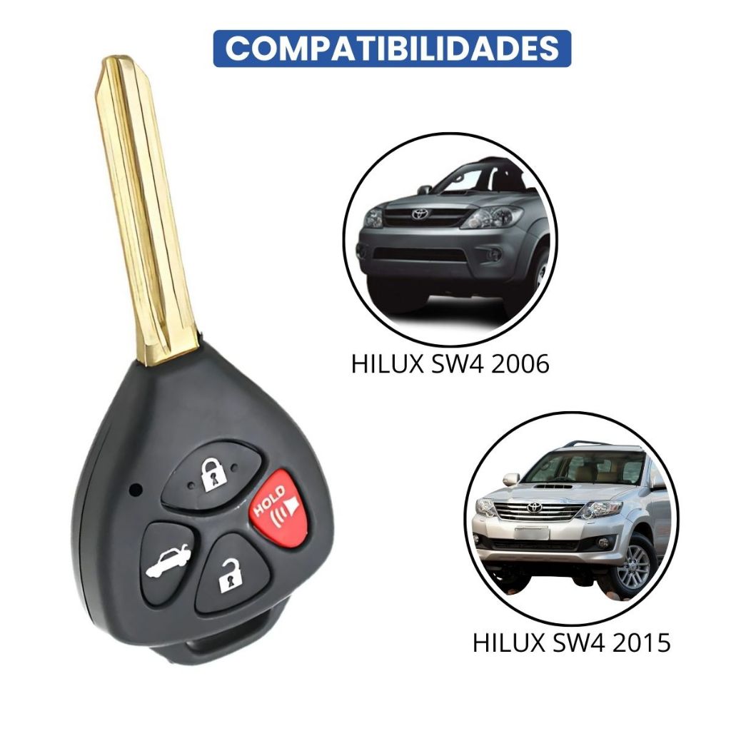 | Chave Hilux Sw4 2006 á 2015 Carcaça Oca de 4 Botões este produto | R$ 20,99 | — | 4.9/5 | 23 |