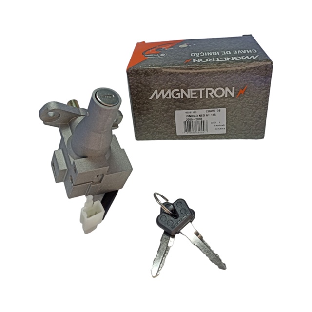 Aplicação da Chave Ignição: Compatível com: Motos Yamaha: At115 Neo 2005 a 2008 Neo115 2005 a 2008 Obs: Considerar o ano modelo de sua moto. Exemplo: ano fabricação 2009 / ano modelo 2010 - Equivale ao ano 2010. Especificações técnicas: Código do fabricante: 90261190 Código Original:2D5H-250-111 Chave de ignição Contato de ignição Cilindro de ignição A Marca: A Magnetron é pioneira na industrialização de sistemas de ignição e energia. Sendo reconhecidamente a melhor opção em peças de reposição para motos. Prazo de Garantia: 3 meses para defeitos de fabricação. Importante: - Para a instalação correta do produto, leve ao mecânico de sua confiança! - Não nos responsabilizamos pelo uso indevido do produto ou vícios de instalação.