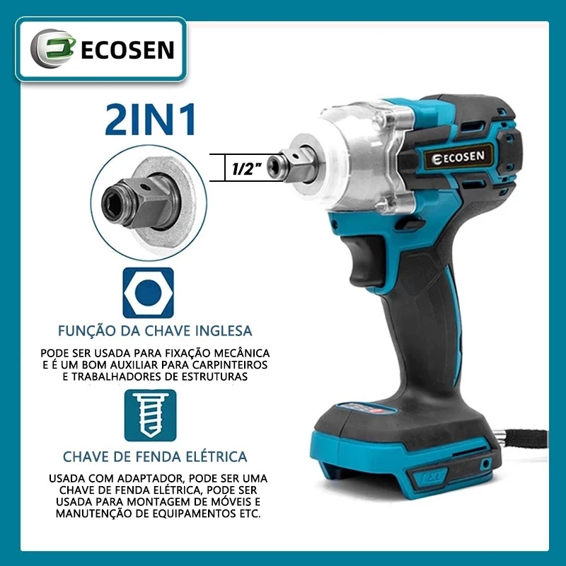 | Chave de Impacto Elétrica Sem Fio 3 em 1 Com 68V Bateria Motor Brus... | R$ 199,00 | 46% | 4.8/5 | 460 |