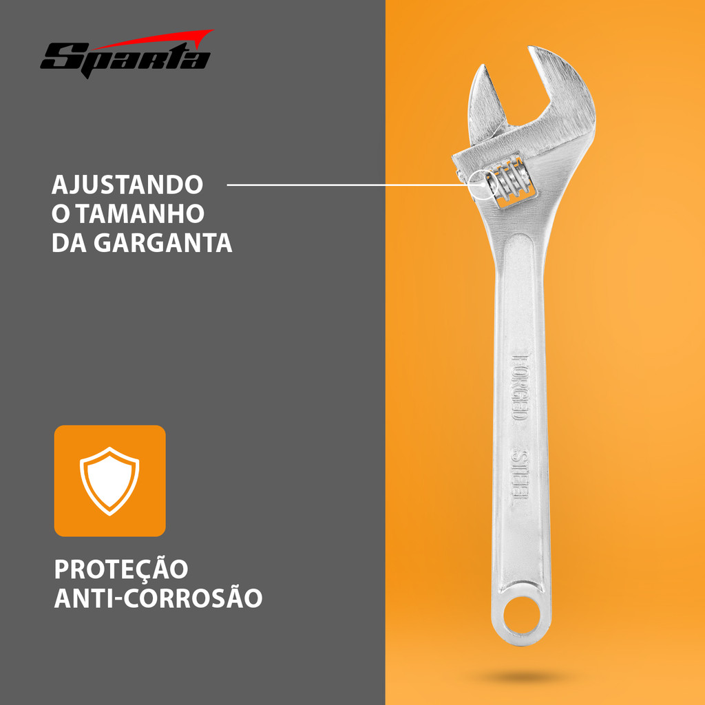 Com 37,5 cm de comprimento, esta chave inglesa é uma ferramenta versátil para reparos rápidos e eficientes. Ideal para mecânicos, encanadores, mecânicos de automóveis e até mesmo para quem está começando, ela oferece ajuste flexível para fixadores de tamanhos variados. A chave é fabricada em aço carbono de alta qualidade, tipo 45, e recebe um tratamento térmico seletivo para garantir uma longa vida útil. O revestimento cromado não só confere um acabamento elegante, mas também protege contra a corrosão, mantendo o mecanismo de parafuso sem-fim seguro da umidade. Vantagens: Trabalho Eficiente: Ajustável para fixadores de tamanho não padrão, proporcionando flexibilidade no trabalho. Longa Vida Útil: Fabricação em aço carbono ferramenta 45 com tratamento térmico para durabilidade. Proteção Contra Corrosão: Revestimento cromado que protege a ferramenta da umidade e da corrosão. Esta chave inglesa Sparta é a companheira ideal para uma variedade de tarefas de reparação, combinando funcionalidade e resistência.