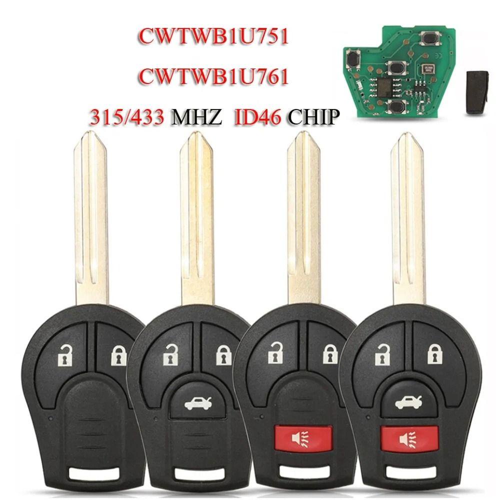 Chave Remota NIDOSE , De Carro Com Chip ID46 De 315/433MHZ De Entrada Sem Para Nissan Sylphy Cube