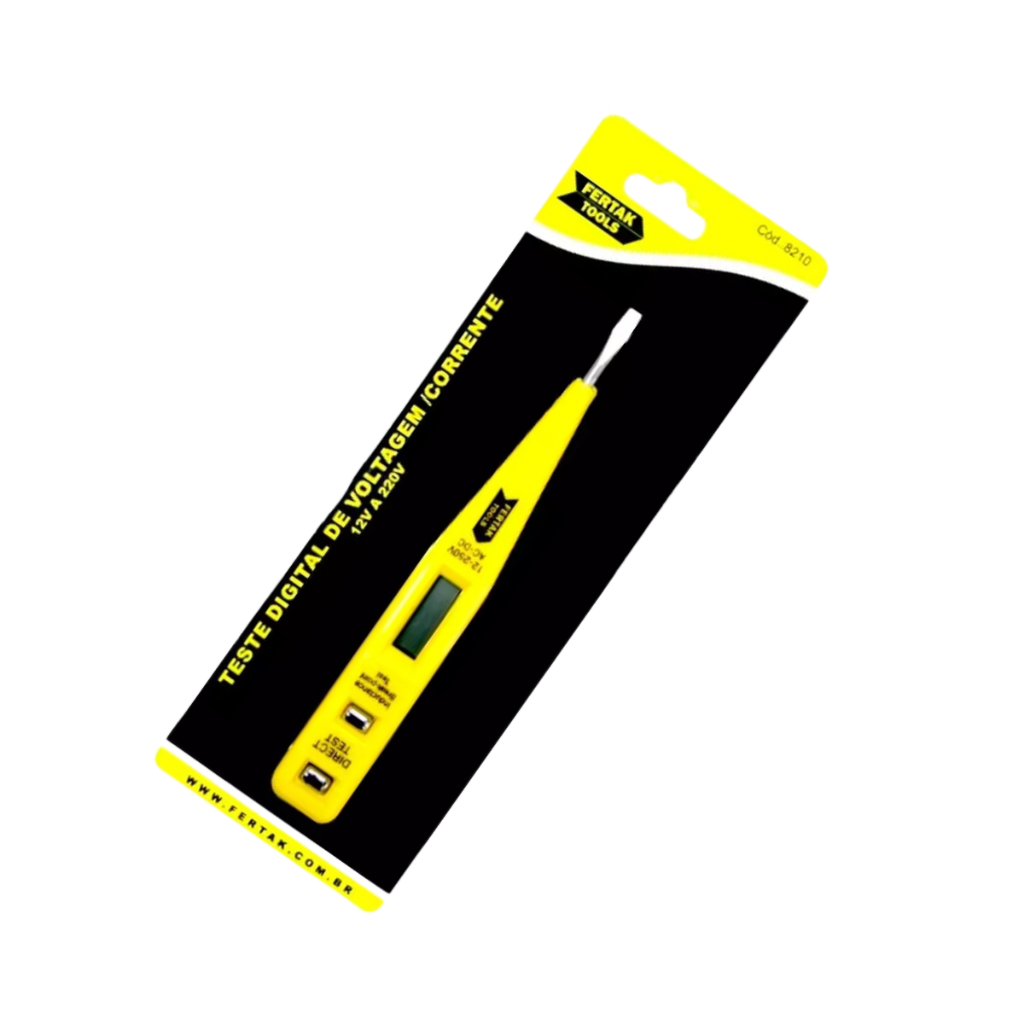 Chave Teste Digital De Voltagem Corrente 12v a 220v - Mede corrente alternada e corrente contínua, terra e fase linha - Fácil manuseio - Visor Digital que indica a voltagem - Não utiliza bateria - Corpo de polipropileno com ponta em aço carbono. - Medição direta. - Os dígitos finais medem voltagem. - Colocar a ponta do teste no fio ou no ponto que se deseja medir e pressione o botão de medição direta. - O display indicará valores a partir de 12 volts. - A medição corresponde ao maior valor indicado. - Para identificar uma tomada 220 Volts, coloque a ponta do teste no polo da tomada. Especificações - Cor: Amarela. - Embalagem: 01 Unidade.: