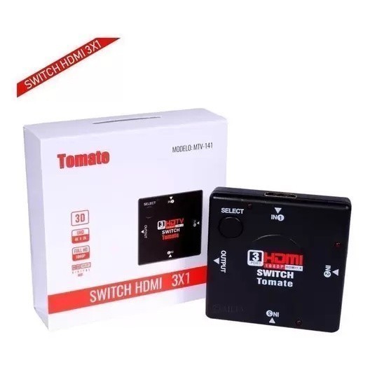 O Chaveador Switch HDMI 3x1 da Tomate permite conectar até 3 dispositivos HDMI diferentes em uma única entrada de TV ou monitor, com qualidade de imagem Full HD 1080p. Ideal para quem possui múltiplos aparelhos como consoles, notebooks, players de mídia ou TV boxes e deseja alternar facilmente entre eles sem precisar desconectar cabos. Principais Características: Suporta cores profundas de 12 bits. Resolução máxima Full HD 1080p. Compatível com HDMI 1.4b e taxa de transmissão de até 5 Gbps. Mantém a qualidade do áudio digital e vídeo HD sem perdas. Suporta gráficos 2K, 1440p e resolução de computador até 1920x1200p. Comutação simples e rápida, através de botão “Select”. Multifuncional: pode ser usado de forma inteligente ou mecânica. Como usar: Conecte os dispositivos HDMI nas entradas do switch. Conecte a saída HDMI à sua TV ou monitor. Pressione o botão “Select” para alternar entre os dispositivos conectados. Especificações Técnicas: Entradas HDMI: 3 Saída HDMI: 1 Suporte de resolução: até 1080p Full HD, 2K, 1440p, 1920x1200p Suporte de áudio: Digital Modelo: MTV-141 Marca: Tomate
