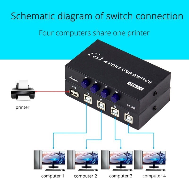 Chaveador Switch Hub Usb Para Impressora Scanner 4 Portas
