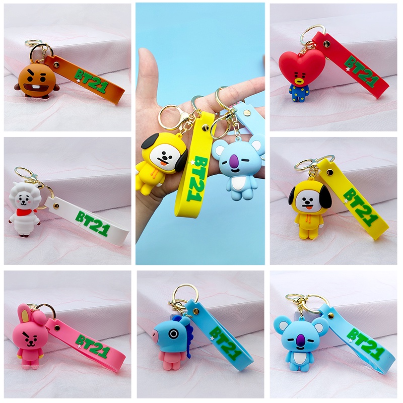 Chaveiro 3D Keychain BTS Cute Cartoon Keyring Para Porta-Chaves De Identificação Decoração Sling Anti-Lost Accessories