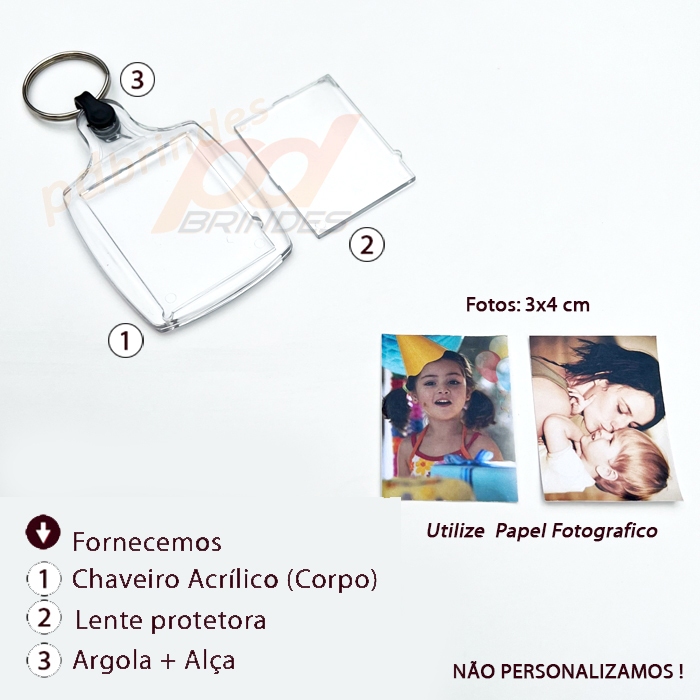 | Chaveiro Acrílico para foto 3x4 - Alça de Plástico - 50 Unidades este produto | R$ 54,27 | — | 5.0/5 | — |