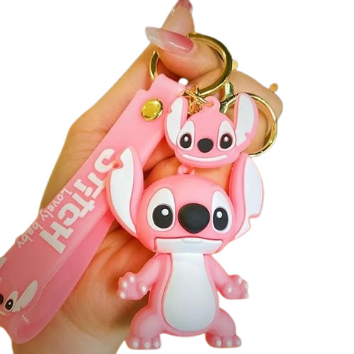 Chaveiro Angel Stitch 3D Rosa Emborrachado | Fofo, Ideal para Mochila, Bolsa e Chaves