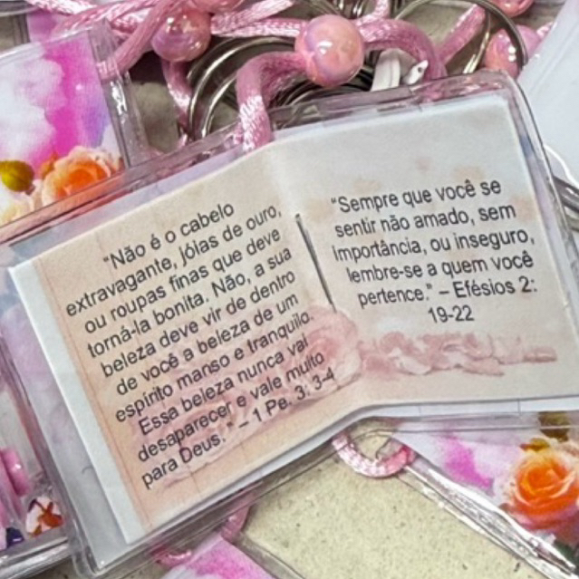 Chaveiro Bíblia Mulher Virtuosa Flores Rosa Com Pérola kit 12 peças B08