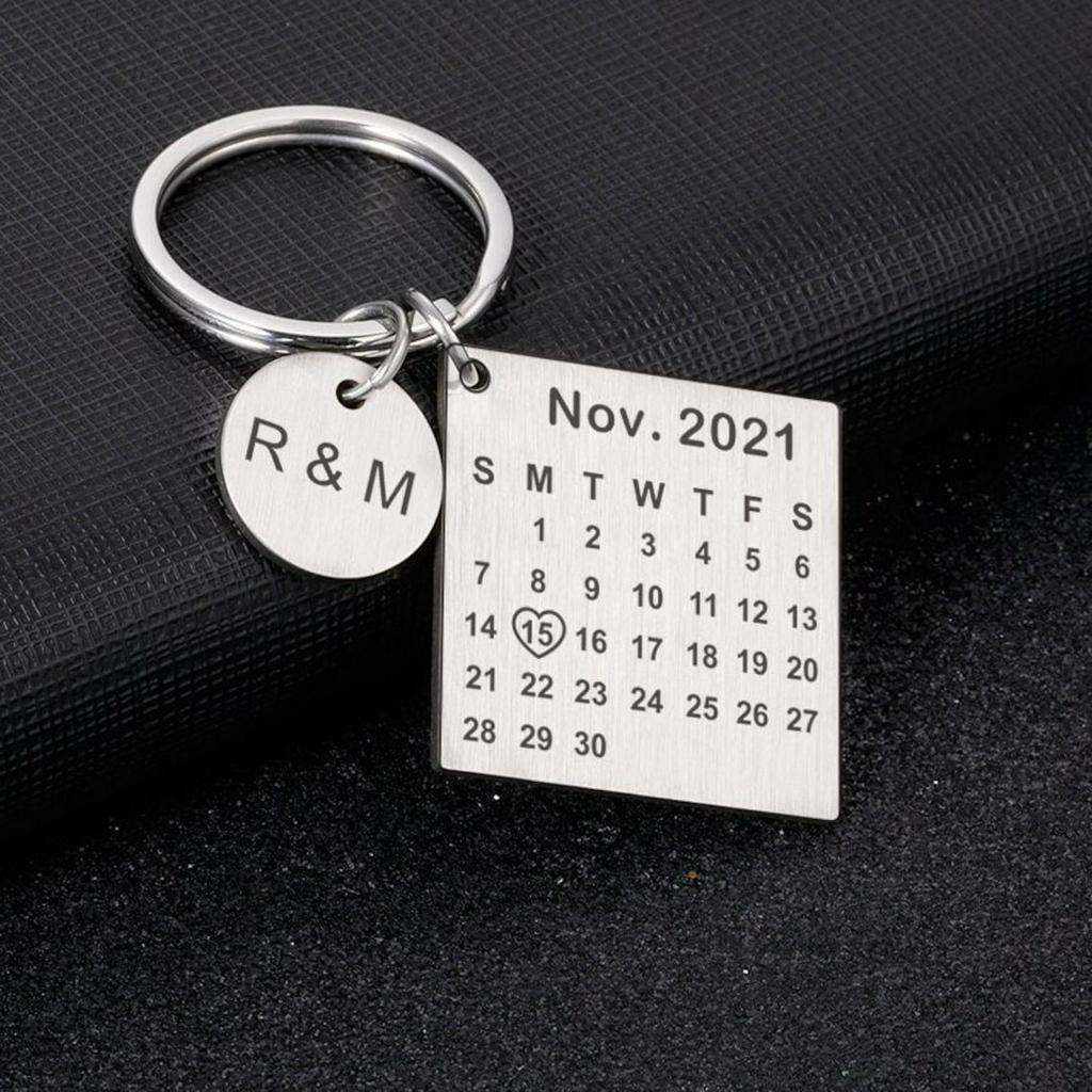 Chaveiro Calendario aço inoxidável gravação personalizada Data Frases Iniciais Casal Namorados Logo
