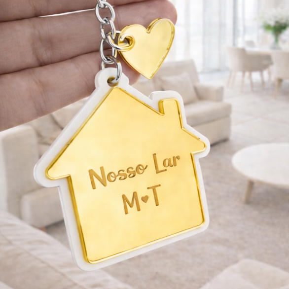 Chaveiro Casa Personalizado em Acrílico | Lembrancinha Nosso Lar com Iniciais | Presente Casal, Família e Casa Nova