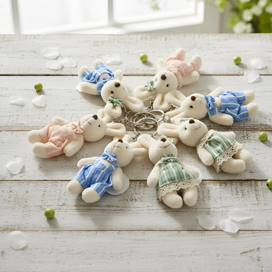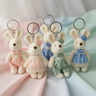 Chaveiro de Coelho Sortido – 1 Unidade Encante-se com esses chaveiros de coelhinho em pelúcia, perfeitos para dar um toque fofo e delicado ao seu dia a dia. Cada coelho possui um design encantador, com roupinhas em tons suaves e estampas listradas, além de detalhes delicados que deixam o acessório ainda mais especial. Ideal para usar em chaves, mochilas, bolsas, estojos ou como lembrancinha, esse chaveiro é leve, macio e cheio de charme. Detalhes do produto: Produto anunciado: 1 unidade de chaveiro Modelo: Coelho em pelúcia Cores e roupinhas: Sortidas (enviado conforme disponibilidade em estoque) Material: Pelúcia macia + argola metálica resistente Estilo: Fofo, delicado e decorativo Perfeito para: Presentear Lembrancinhas de festas Decoração de bolsas e mochilas Uso pessoal Observação: Não é possível escolher a cor ou modelo. O envio é feito de forma aleatória. Garanta já o seu chaveiro de coelho sortido e leve mais fofura para o seu dia!