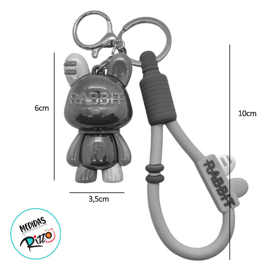 Chaveiro Coelho Metalizado - Rosa e Verde Água - 6cm - 1 unidade - Rizzo