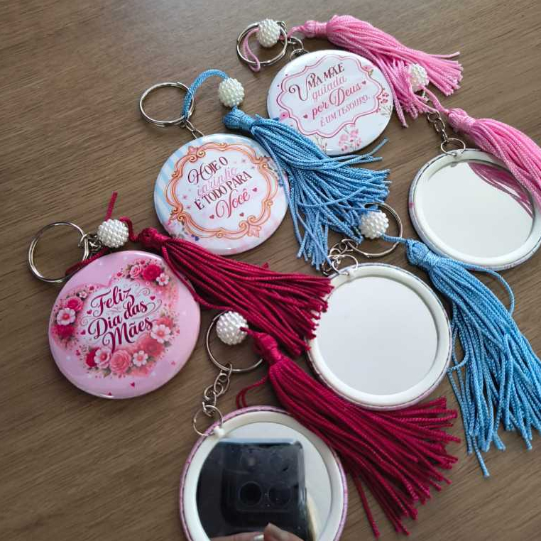 Chaveiro com Espelho Personalizado – Especial Dia das Mães Uma lembrancinha delicada, útil e cheia de significado para presentear no Dia das Mães. Ideal para empresas, escolas, igrejas, eventos corporativos e ações comemorativas. O chaveiro possui frente personalizada com arte temática e verso com espelho funcional, tornando o brinde bonito e útil no dia a dia. DETALHES DO PRODUTO: Formato redondo Parte frontal personalizada Parte traseira com espelho Acompanha tassel decorativo Argola resistente para chaves Impressão de alta qualidade VARIAÇÕES DISPONÍVEIS: Modelos com frases prontas Opção sortida Opção “Envie sua arte” Caso escolha a opção “Envie sua arte”, após a compra envie pelo chat a arte em boa resolução. IMPORTANTE: Arte igual à do anúncio (para opções com frases), alterando apenas detalhes quando aplicável Não alteramos o design das artes prontas Para opção personalizada com sua arte, o cliente deve enviar o arquivo pronto Pequenas variações de cor podem ocorrer conforme a tela do celular ou monitor INDICAÇÃO DE USO: Perfeito como brinde corporativo para o Dia das Mães, campanhas internas de empresas, ações promocionais, eventos escolares e lembrancinhas especiais para homenagear as mães. PRAZO DE PRODUÇÃO: Prazo de produção de 3 dias úteis + prazo de entrega da Shopee. ATENÇÃO: Produto personalizado, não realizamos troca por erro de envio de arte pelo cliente Caso a arte não seja enviada em até 24h após a compra, entraremos em contato pelo chat DÚVIDAS? Fale com a gente pelo chat. Será um prazer te atender.