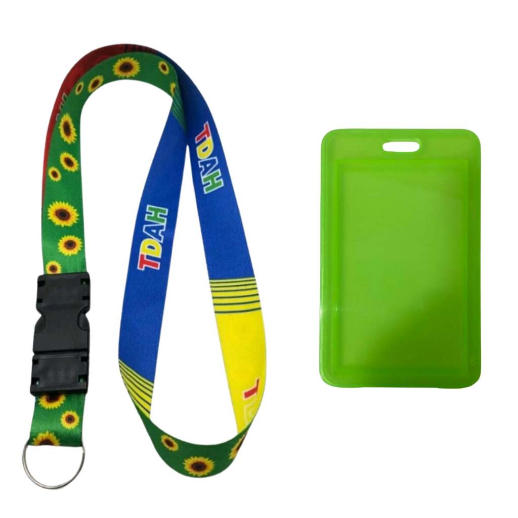 Chaveiro Cordão Dupla Face Girassol E Tdah + Porta Cracha