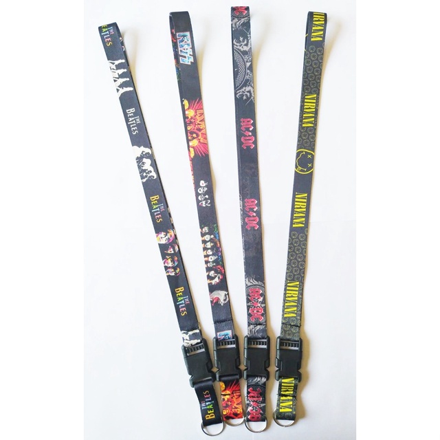 Chaveiro Cordão Moto Pescoço Engate Fecho Rápido Crachá Bandas de Rock Internacional Nirvana/AC-DC/Beatles/kiss