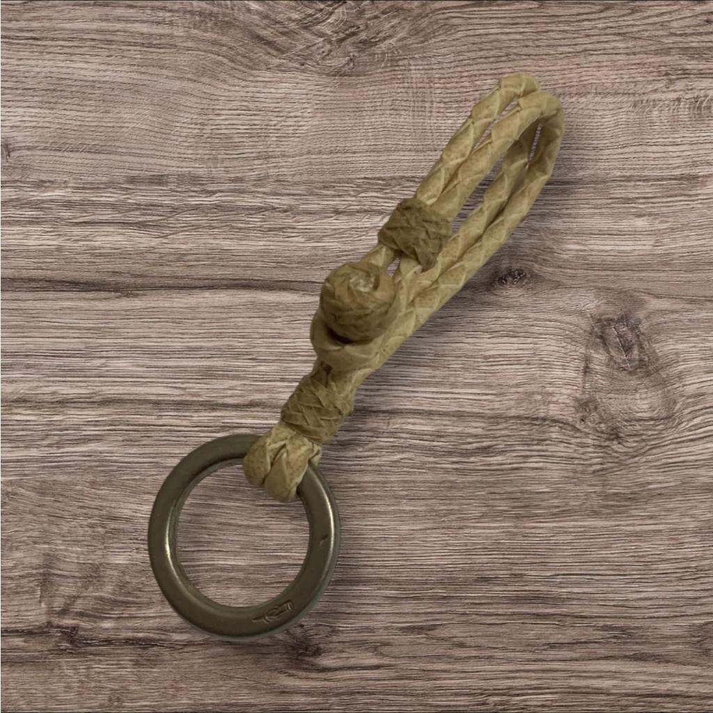 Chaveiro de Couro Cru trançado a mão, Argola corneta em zamak Acabamento fino modelo luxo (tamanhos podendo ter pequenas alterações)