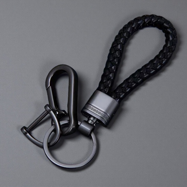 Chaveiro Couro Trançado com Argola e Mosquetão Metálico Premium para Carro Moto Chaves Masculino