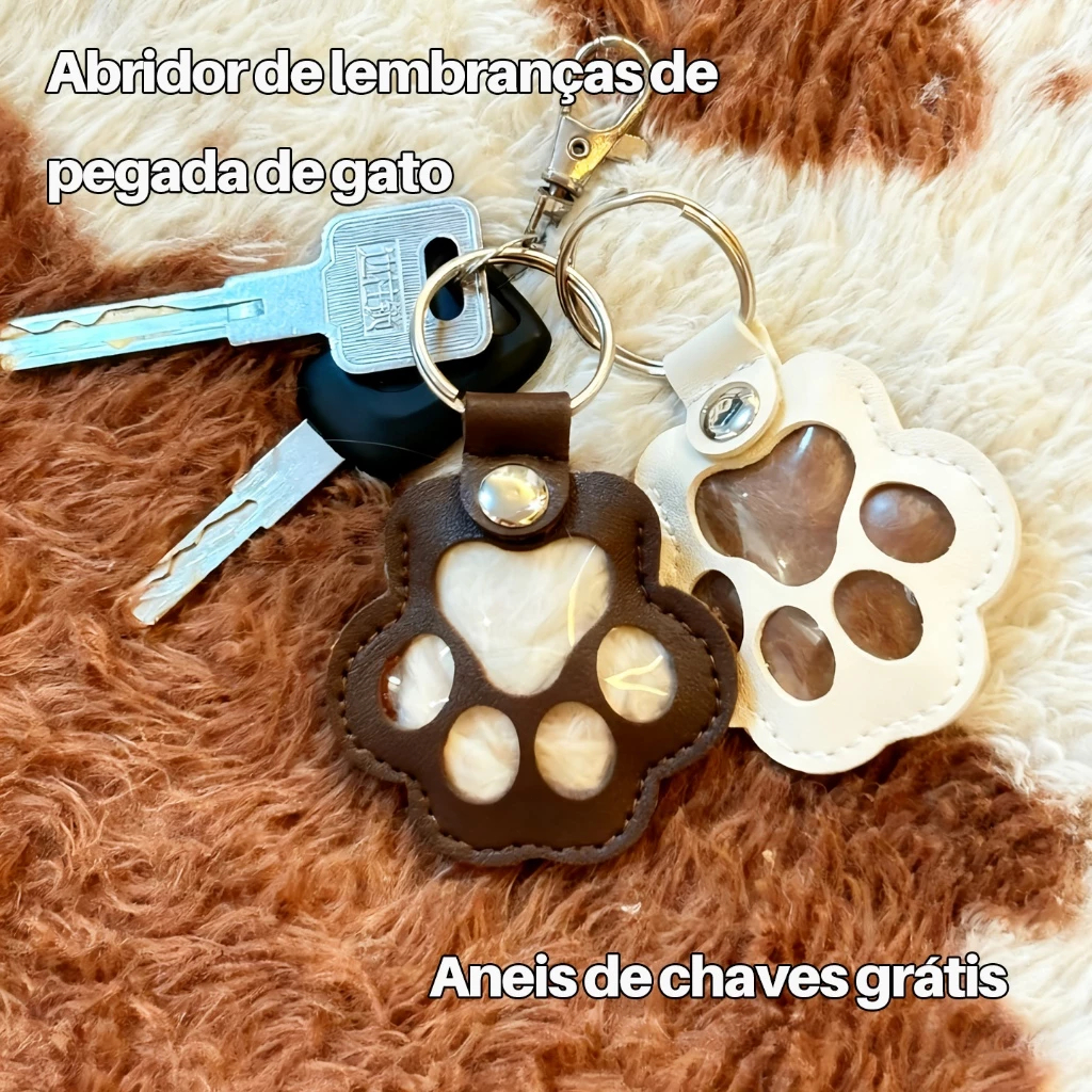 Chaveiro de Couro com Formato de Pata de Cachorro/Gato, Pingente Memorial, Kit com 12 Unidades