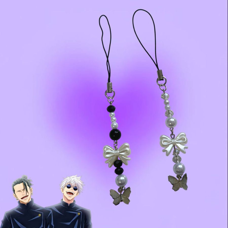 Chaveiro de Laço e Borboleta - Chaveiro para celulares Casal Couple Anime Preto e Branco com laços