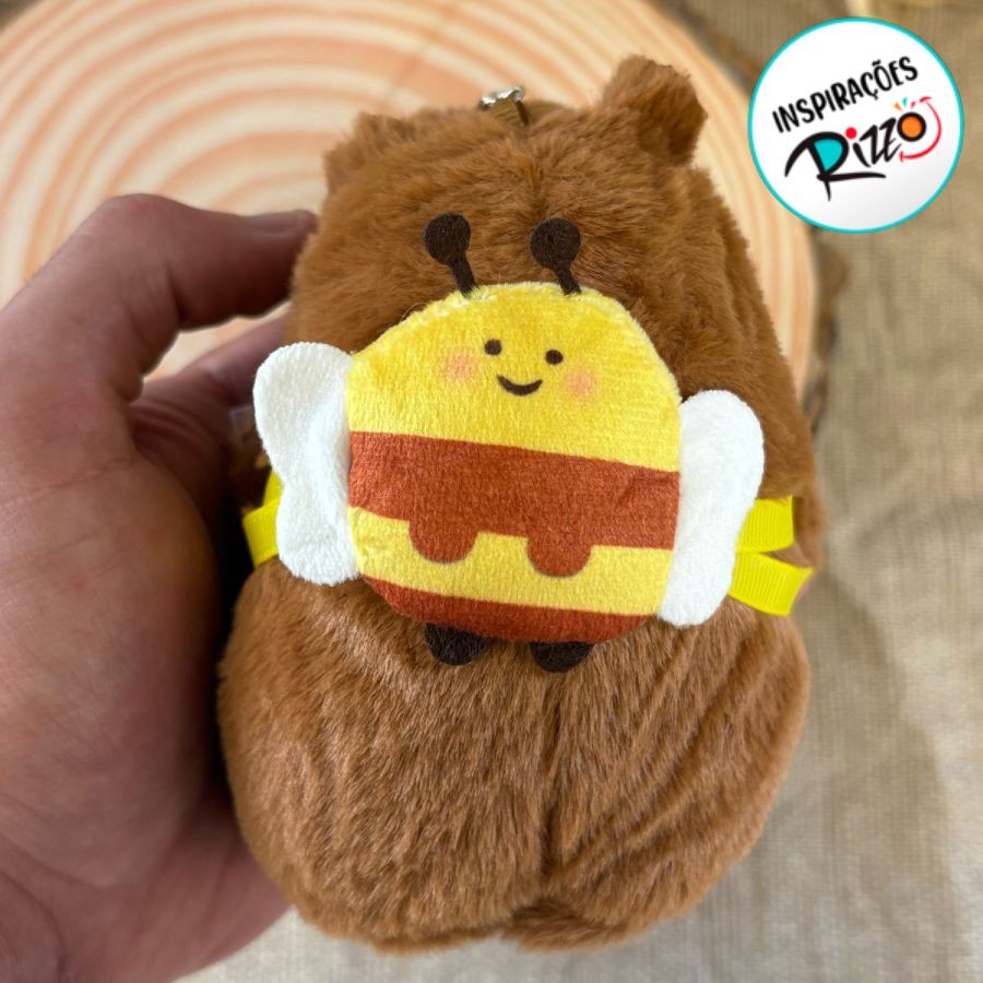 Chaveiro de Pelúcia - Capivara com Mochila de Abelha - 13cm - 1 unidade - Rizzo