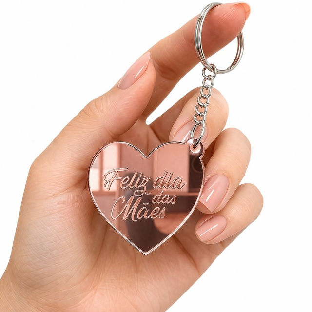 Chaveiro Dia das Mães Espelhado Rosê Gold Presente Criativo Lembrancinha Mãe