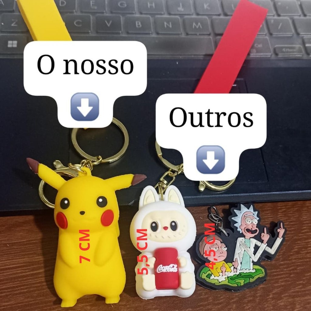 ✨ Chaveiro Emborrachado 3D – Desenhos e Criaturas Colecionáveis! ✨ Dê um toque de cor, fofura e nostalgia ao seu dia a dia com esses chaveiros emborrachados 3D super detalhados, inspirados em personagens icônicos do mundo dos desenhos animados e das aventuras que marcaram gerações. 🌀 Cada modelo foi feito com material emborrachado macio e resistente, com alto relevo que destaca cada expressão e detalhe, trazendo aquela sensação de produto de coleção premium. São perfeitos para quem adora itens criativos, divertidos e com aquele toque geek que transforma qualquer chaveiro em algo especial. 💛 Ideal para pendurar em mochilas, estojos, bolsas, chaves ou até decorar o cantinho geek do seu quarto. 💫 Ótimo presente para amigos, namorados, colecionadores e fãs de animes ou desenhos clássicos. 🌈 Cores vibrantes que não desbotam e mantêm o charme por muito tempo! Com tamanho médio entre 6 e 8 cm, cada modelo é único e cheio de personalidade — seja o elétrico e alegre, o adormecido e fofinho, o poderoso e flamejante, o aquático cheio de estilo ou o misterioso e curioso. 💥 Características: Material: Emborrachado 3D (PVC de alta qualidade) Tamanho: entre 6 e 8 cm (pode variar conforme o modelo) Textura macia, leve e durável Argola metálica resistente e de fácil encaixe Ideal para mochilas, chaves, bolsas e coleções Estilo: Anime / Desenho / Geek / Criativo ✨ Transforme suas chaves em um acessório cheio de estilo e nostalgia! ⭐ Perfeito para quem ama trazer um pedacinho do mundo dos desenhos consigo em qualquer lugar.