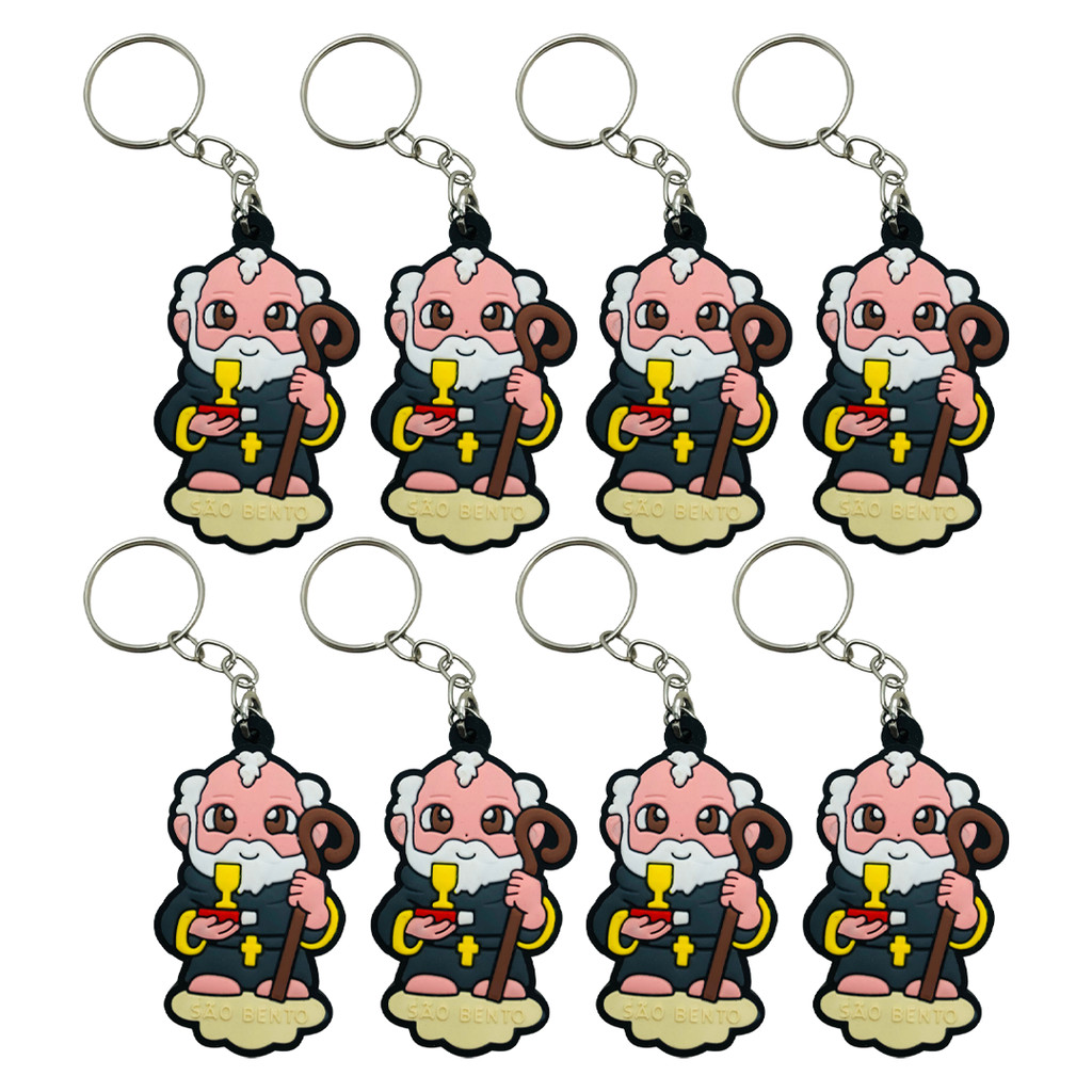 Chaveiro emborrachado de São Bento, com design detalhado e acabamento de alta qualidade, trazendo o símbolo da medalha de São Bento, reconhecida como proteção contra o mal. Produzido com material resistente e durável, é perfeito para organizar suas chaves ou personalizar mochilas e bolsas com um toque de fé e espiritualidade. Ideal para quem busca carregar consigo uma poderosa bênção no dia a dia.