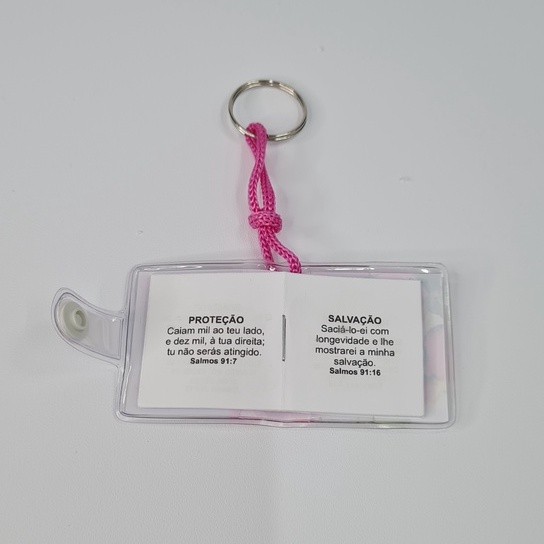 Chaveiro Evangélico Bíblia. Material em cristal com solda eletrônica; lindo design, contém lindos versos bíblicos. Fácil e prático de usar, acompanha uma argola para prender a chave.