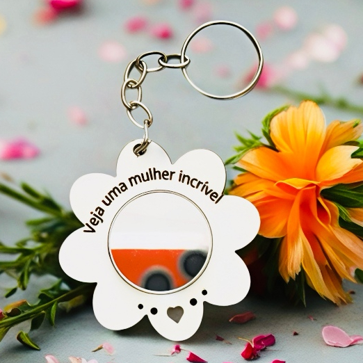 Chaveiro FLOR MULHER INCRÍVEL COM ESPELHO MDF BC, decoração, lembrancinhas