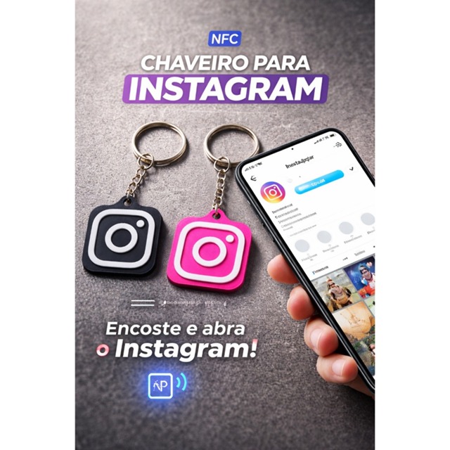 Chaveiro Inteligente TAG NFC - Abra seu Instagram ao Aproximar - Divulgação rápida e simples
