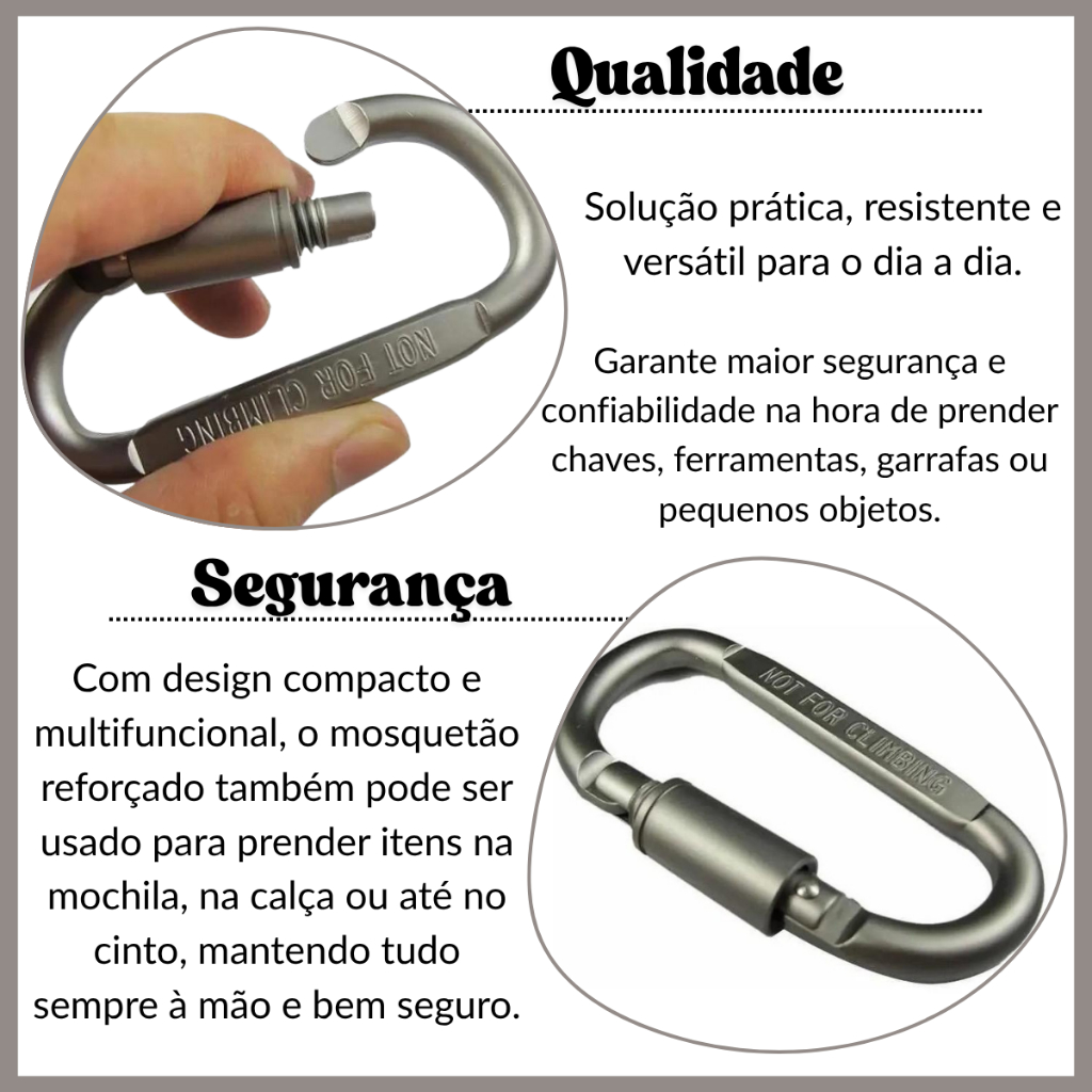 | Chaveiro Mosquetão 1 uni Reforçado Colorido Alumínio Trava Prender ... este produto | R$ 16,00 | — | 5.0/5 | — |