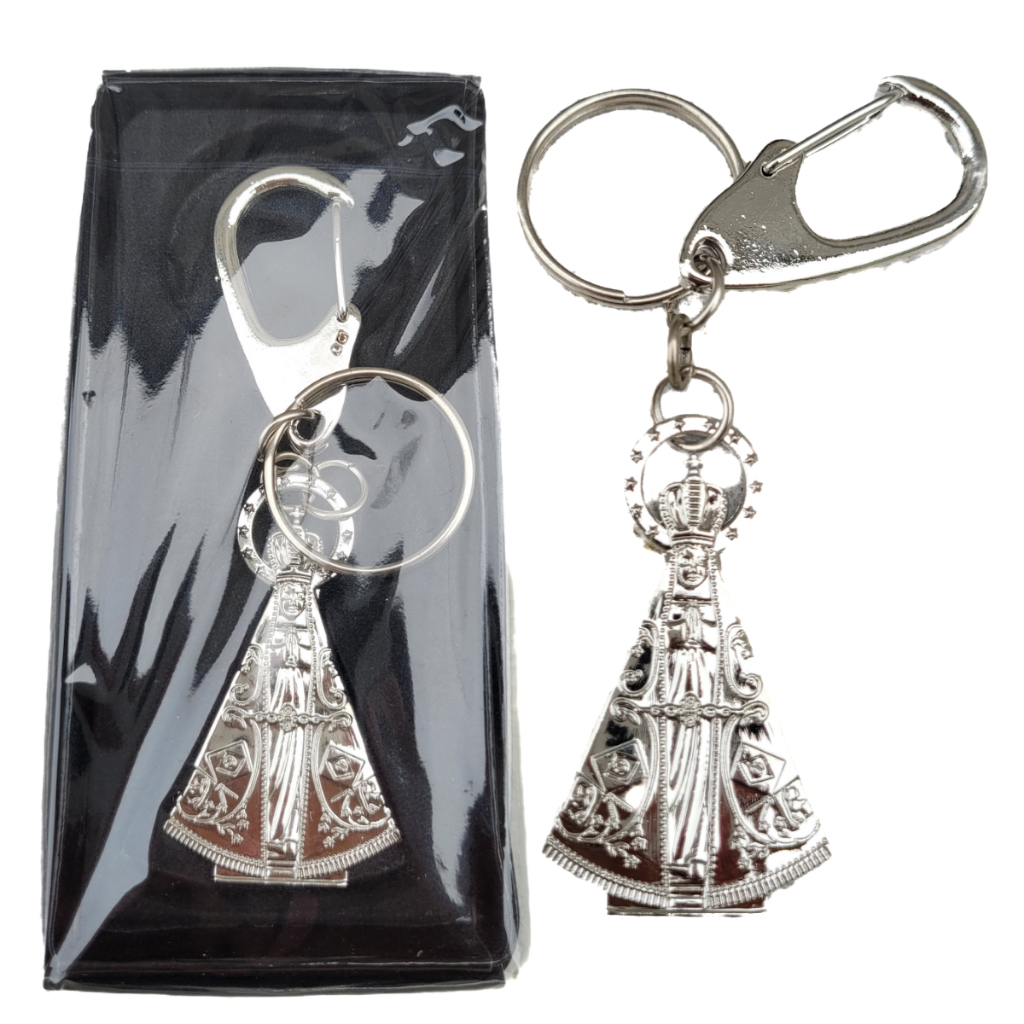 Chaveiro Nossa Senhora Aparecida mini prateado feito em aparecida lembrancinha