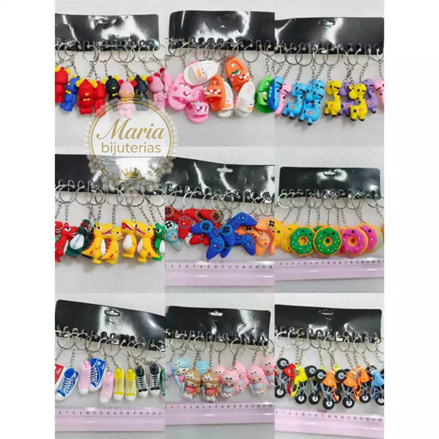 | CHAVEIRO PACOTE COM 12 KIT ATACADO REVENDA EMBORRACHADO MUITOS MOD... este produto | R$ 25,90 | 29% | 5.0/5 | 158 |