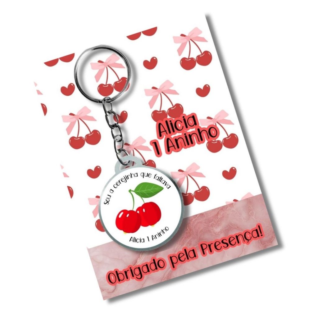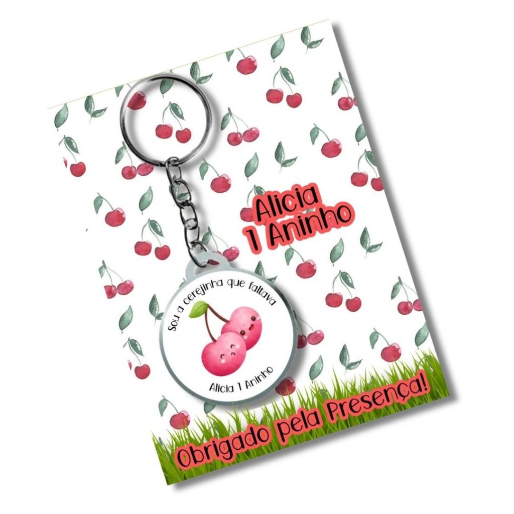 Chaveiro Personalizado +card + embalagem - Cerejinha