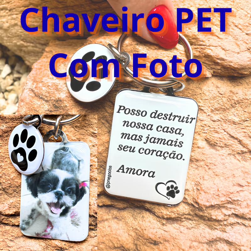 Chaveiro Pet Com Foto Personalizado + Pingente Patinha Metal Resinado - Envie sua Foto e Frase