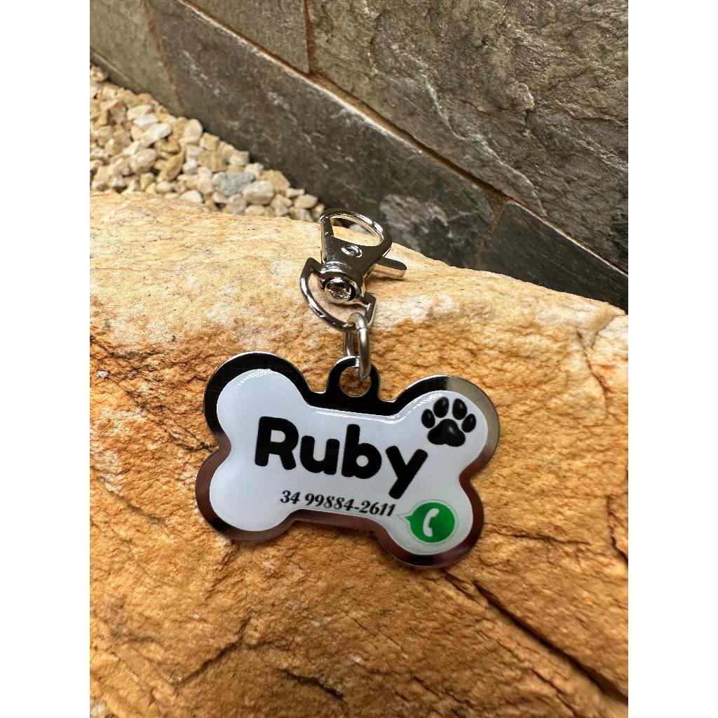 Chaveiro Placa de Identificação Pet Personalizada Metal Resinado para Cães e Gatos - Com Nome e Telefone