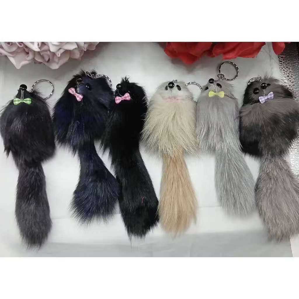 Chaveiro pompom de pelo de raposa de 12cm, chaveiro pendurado em carro com pingente prateado