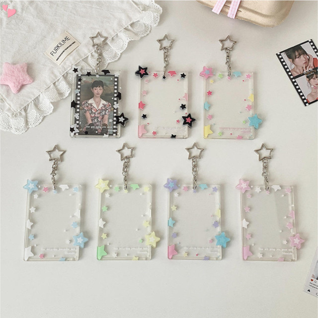 Chaveiro Porta-Cartões Fotográficos Estrela , Capa Protetora Rígida Para Cartão Portátil , Fofos Em Acrílico Transparent