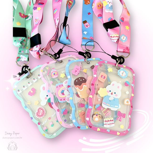 Chaveiro porta cracha para você armazenar seu crachá ou cartão com estilo ! Disponível em 4 modelos. Tome como medida de exemplo um cartão de crédito. Especificações Material: PC, PET e Poliéster Comporta 1 cartão Acompanha cordão chaveiro Temos outros modelos disponíveis em nossa loja Clique em nosso perfil e visite nossa loja para conhecer! ----------------------------------------------------------------------------------------------------------- Daisy Paper - Papelaria e produtos importados Para mais informações entre em contato 📞