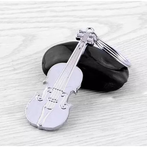 Chaveiro Presente Musical 3D Prateado Pingente Violino Metal